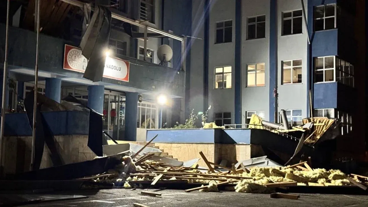 Çatıdan kopan dev sac ve demir yığınlarının çevreye saçıldığı anlarda, okul bahçesinde ve caddede kimsenin bulunmaması olası bir can kaybını önledi. Olayın ardından bölgeye sevk edilen polis ekipleri geniş güvenlik önlemleri alırken, itfaiye ekipleri yola savrulan tehlikeli parçaları temizlemek için çalışma başlattı.