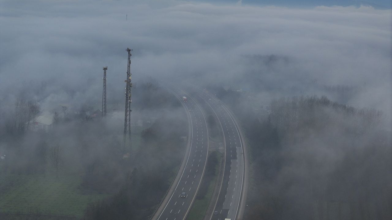Yoğun sis nedeniyle otoyolda görüş mesafesi yer yer düştü. Güzergahı kullanan sürücüler, hızlarını azaltarak kontrollü şekilde ilerledi.