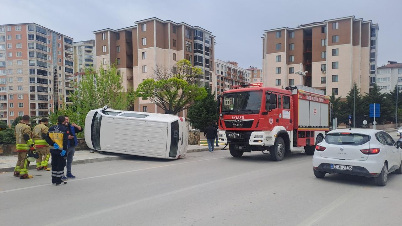 Çarpışmanın şiddetiyle savrulan hafif ticari araç, yol ortasında devrildi. Araç içerisinde sıkışan ve yaralanan sürücü E.K. için çevredekiler hemen yardıma koştu.