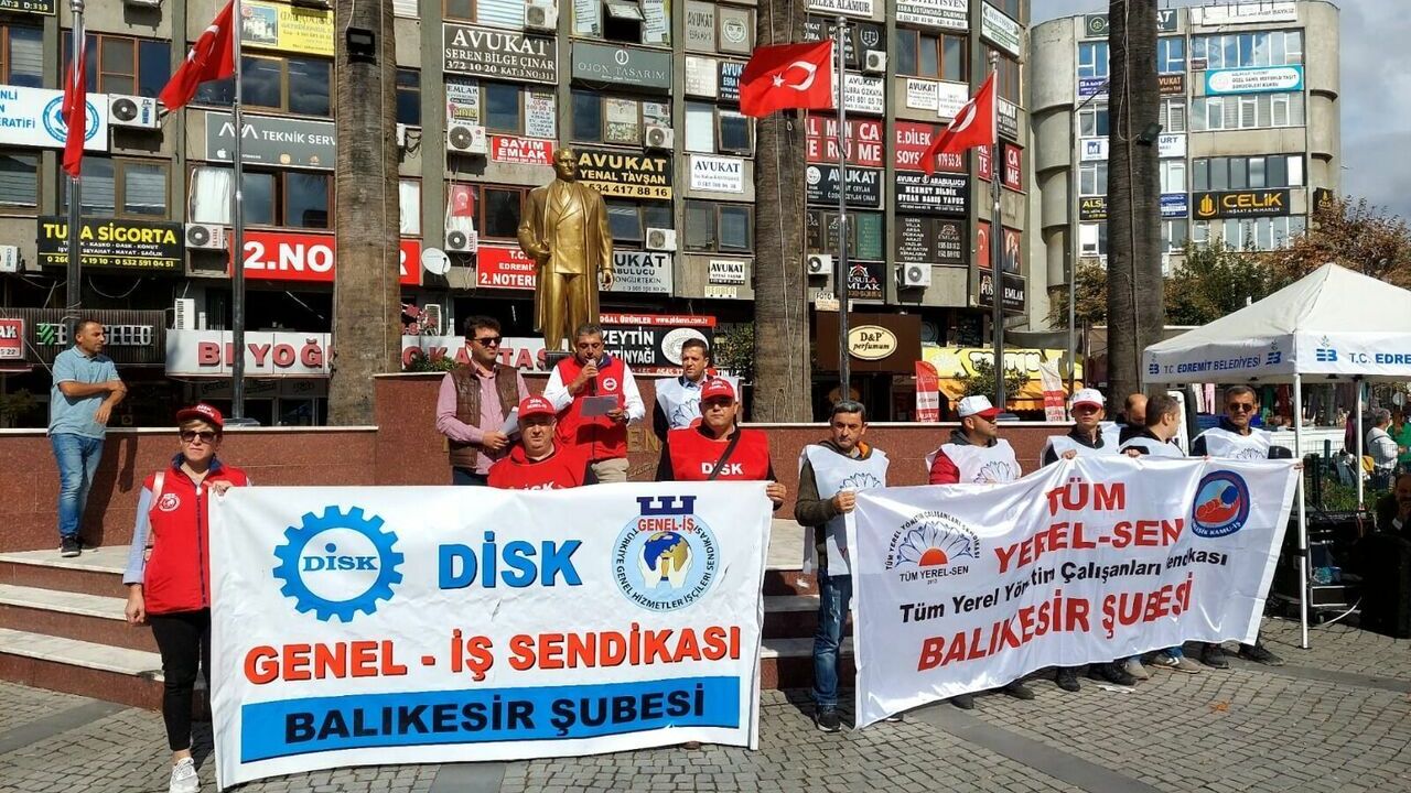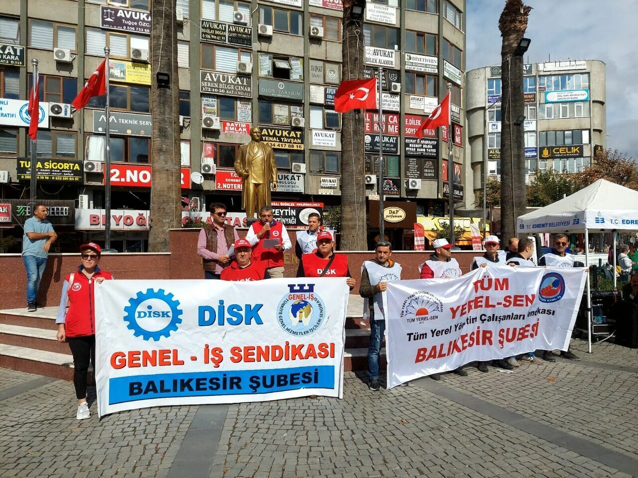 Basın açıklamasına DİSK/Genel-İş Sendikası Balıkesir Şube Başkanı Hüseyin Ovalı, Tüm Yerel-Sen Balıkesir Şube Başkanı Sezer Yıldız, Tüm Bel-Sen Balıkesir Şube Başkanı İlker Demirbay, ve çok sayıda belediye çalışanı katıldı.