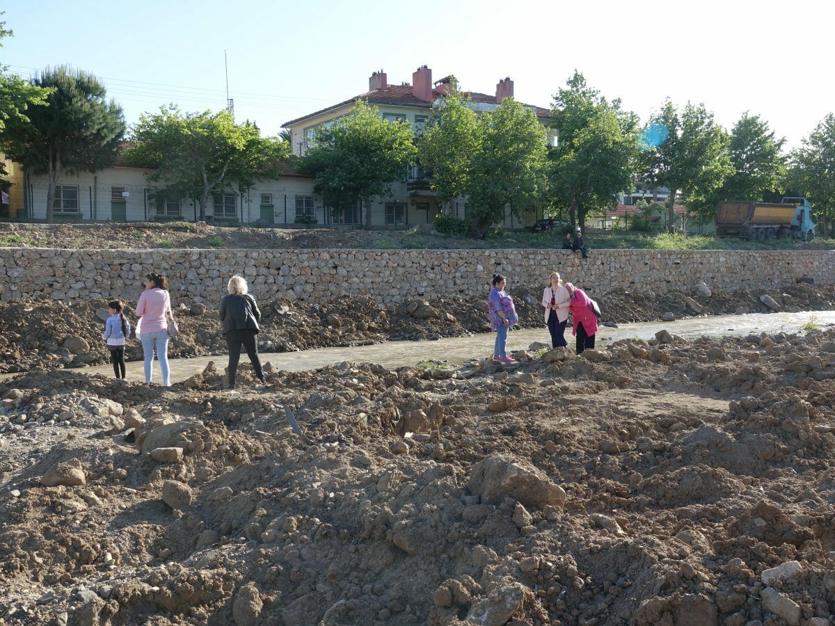 Dileklerini kağıtlara yazıp topladıkları çakıl taşlarını çaya atan vatandaşlar, ayrıca çay kenarında taşlar ile ev ve araba şekilleri de yaptı.
