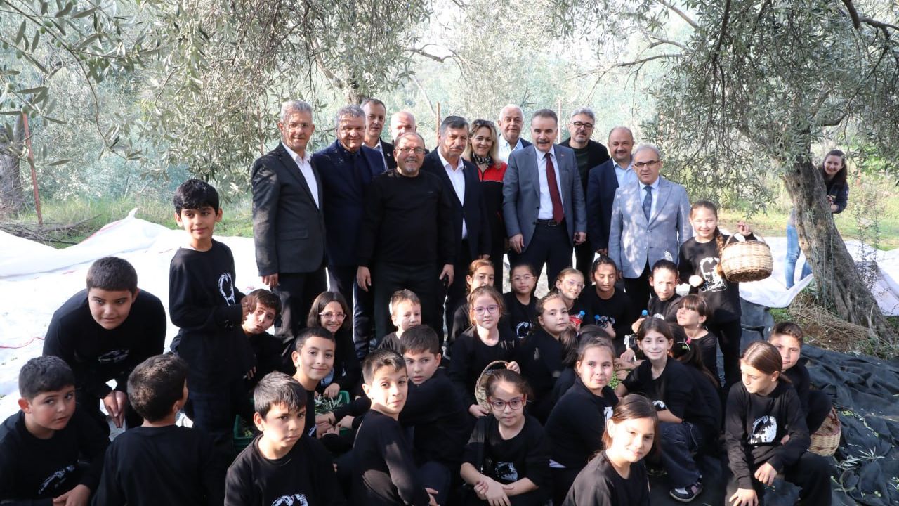 Protokol üyeleri öğrencilerle birlikte zeytin toplayarak üretim sürecine eşlik etti. Etkinlikte yer alan katılımcılar, çocuklara tarımsal üretimin ülke ekonomisi ve bölgesel kalkınma açısından taşıdığı değeri anlattı.