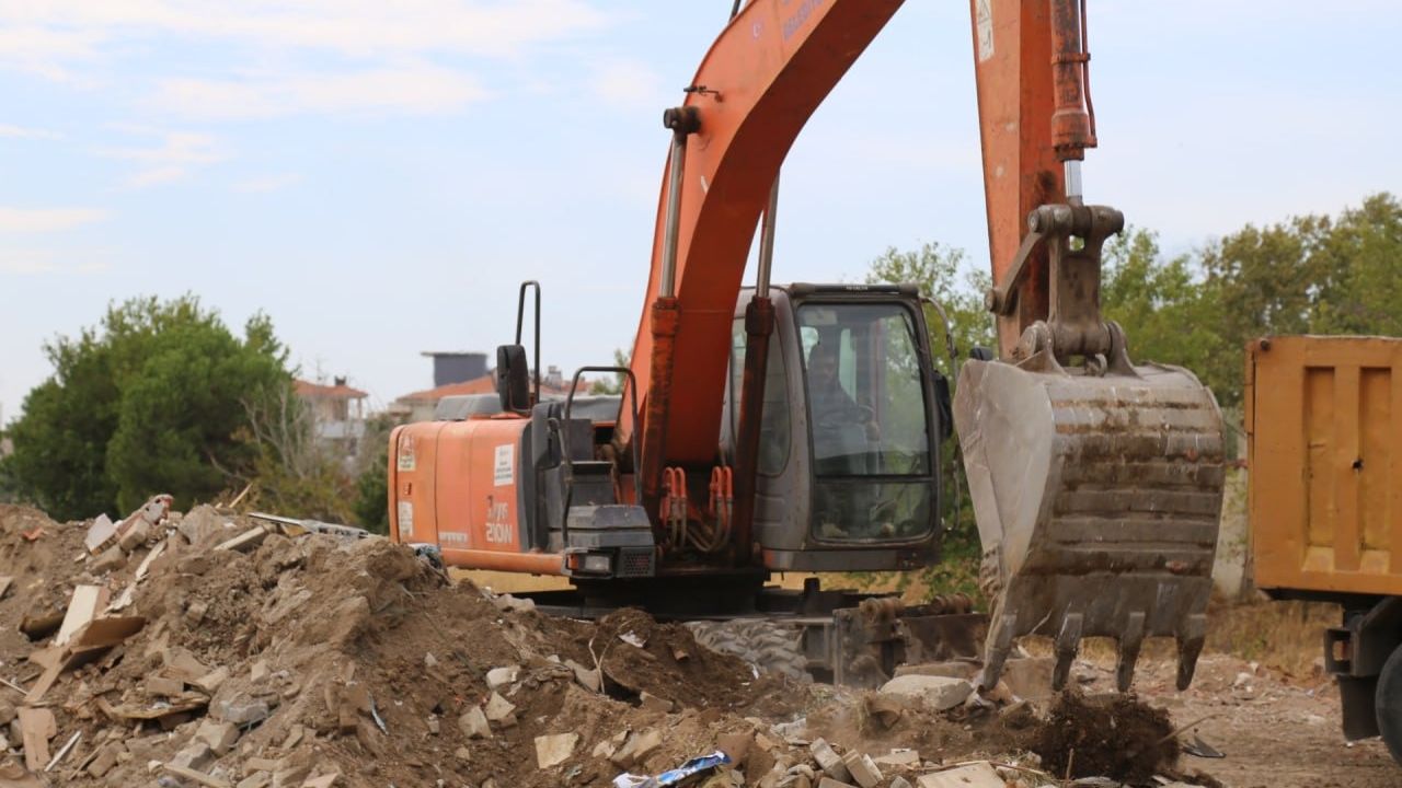 Ekipler, Şahindere Mahallesi’nde arıtma tesisi yanında izinsiz şekilde dökülen molozları temizlemek için yoğun bir mesai yürütüyor.