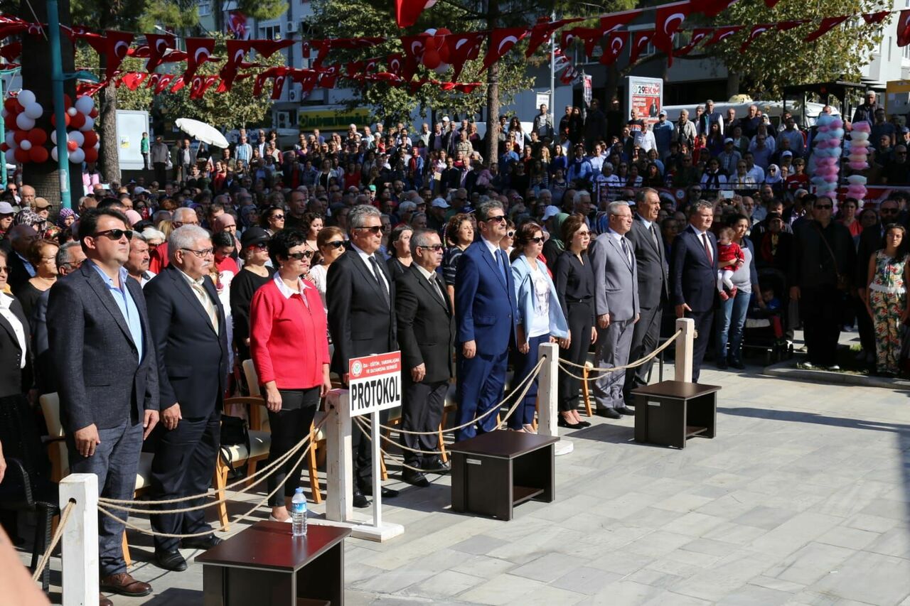 “Bir Cumhuriyet coşkusunu daha birlikte yaşamaktan tarifsiz bir mutluluk ve onur duyuyor, sizleri sevgiyle ve saygıyla selamlıyorum. Cumhuriyetimizin 96.yıldönümü kutlu olsun.Yıllar önce her şeyimizi kaybetmiştik. Bir milli mücadeleye giriştik. Sakarya’da, Dumlupınar’da, Büyük Taaruz’da savaştık ve Edremit’te direndik. Kahramanca dövüştük; sonunda büyük bir zafer elde ettik ve 96 yıl önce bugün 29 Ekim’de yeniden dirildik. Cumhuriyet’i ilan edip medeni bir ülke kurduk. Onların emeklerine, onların mücadelelerine şükran olsun! Bu muhteşem destanı yazanlara selam olsun. Herkesin bilmesini isterim ve yüksek sesle haykırırım ki; Bizim birinci vazifemiz Türk istiklalini, Türk Cumhuriyetini ilelebet muhafaza ve müdafaa etmektir. Her yer tükense, her yer yorulsa; Edremit Cumhuriyet kararlılığından vazgeçmeyecektir. Çünkü Edremit Cumhuriyet’i muhafaza edenlerin kalesidir. Çağdaş insanların, demokrasi ve cumhuriyete inanmış insanların yaşadığı Edremit’ten diyoruz ki: Milli egemenliğin üzerinde bir güç tanınamaz. Türkiye Cumhuriyeti hiçbir zaman şeyhler, dervişler, müritler, meczuplar memleketi olamaz. Cumhuriyet; çalışmanın, kararlılığın adıdır. Azmin, birlik olmanın, yeniden doğmanın karşılığıdır. Cumhuriyet bir arada yaşama onurudur. Vatan için siper edilmiş göğüslerin, kadınıyla erkeğiyle çocuğuyla birleşmiş yüreklerin, bağımsızlık yolunda kenetlenmiş ellerin tarihidir. Şairin dediği gibi; ne geçmiş tükendi ne de yarınlar… Biz Atatürk’ün ışığıyla yolumuzdan milim sapmadan kararlılıkla devam ediyoruz. Bizi hiçbir güç yolumuzdan döndüremez. Sarsılmadan, yorulmadan Cumhuriyete bağlı kalacağız çünkü Cumhuriyet, büyük Türk devriminin adıdır. Çünkü Cumhuriyet, bilhassa kimsesizlerin kimsesidir. Çünkü Cumhuriyet, Atatürk’ün ifadesiyle; “En büyük bayramdır. Biz Cumhuriyetimizi seviyoruz. Bağımsız olmak istediğimiz için seviyoruz. Kutsal dinimizin alet edilmemesi için seviyoruz. Kadın erkek eşitliğine inandığımız için seviyoruz. Medeni bir ülke olmak istediğimiz için seviyoruz. Birlik ve beraberlikle her zorluğu yeneceğimize inandığımız için seviyoruz. Çünkü biz, Mustafa Kemal Atatürk’ü seviyoruz. Benim en büyük eserim Cumhuriyet diyen, çağdaş bir ülke kuran ve Edremit’te ağırlanan Büyük Önderimiz Mustafa Kemal Atatürk’ü saygıyla, minnetle, şükranla anıyorum. Böylesine özel bir günde Çanakkale’de, Yemen’de, Sarıkamış’ta, Kaliçya’da ve nice cephelerde toprağa düşen şehitlerimizin ruhları şad olsun diyorum. Kuvayi Milliye kahramanlarımızın ruhu şad olsun. Kurtuluş Savaşı kahramanlarımızın mekanı cennet olsun. Atatürk ve silah arkadaşları ışıklar içinde uyusun. Canlarını bu ülkeye, bu cumhuriyete feda eden aziz şehitlerimizi rahmetle anıyorum. Şanlı gazilerimize sonsuz şükranlarımı sunuyorum. Vurgulayarak söylüyorum ki; Cumhuriyeti onlar kurdu, cumhuriyeti biz koruyacağız."