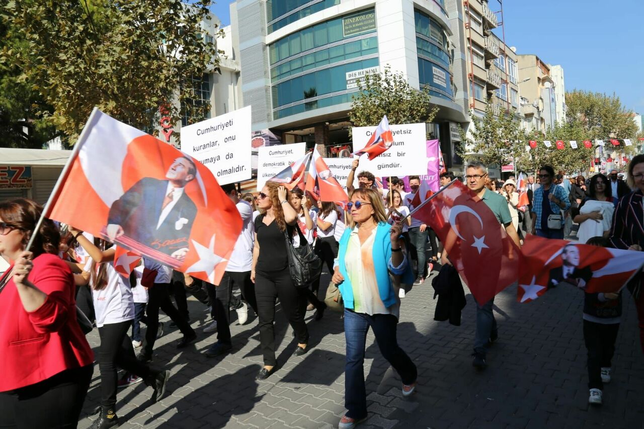 Edremit Belediyesi’nin katkıları ile Zeytinli İda Eğitim, Yardımlaşma ve Dayanışma Derneği (İDA-DER) tarafından geleneksel “7. Cumhuriyet Halk Şöleni” Cumhuriyet Meydanı’ndan Faruk Serpil Parkı’na devam eden kortej yürüyüşü ile başladı. CHP Balıkesir Milletvekili Ensar Aytekin, Edremit Belediye Başkanı Selman Hasan Arslan, CHP Edremit İlçe Başkanı Fatih Yılmaz, İYİ Parti Edremit İlçe Başkanı Mehmet Emin Karabulut, muhtarlar, sivil toplum örgütü temsilcileri ve vatandaşların katıldığı tören saygı duruşu, İstiklal Marşı ve andımızın okunması başladı. Açılış konuşmasını İDA-DER Başkanı Zehra Aksay yaptı.