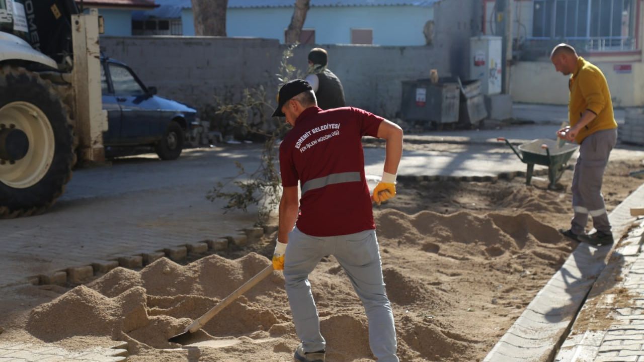 Edremit Belediyesi ekipleri, Tuzcumurat Mahallesi İstiklal İlkokulu çevresinde yol tamirat çalışmalarını hummalı bir şekilde sürdürüyor.