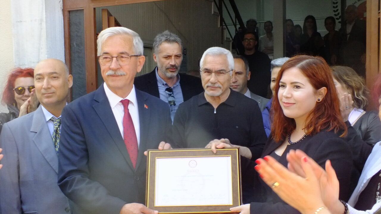CHP'den Erdek Belediye Başkanlığına seçilen Burhan Karışık mazbatasını alarak görevine başladı.