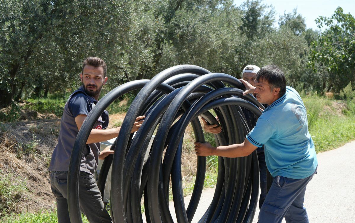 Balıkesir Büyükşehir Belediye Başkanı Ahmet Akın, Erdek’in Gedeve Bölgesi’nde 20 bin zeytin ağacını tarımsal sulamayla buluşturmasının ardından şimdi de Düzler Bölgesi’nde yaşanan tarımsal sulama problemini ortadan kaldırarak 60 bin zeytin ağacını suya kavuşturdu. Bölgede sulama imkânı olmadığı için istediği verimi alamayan zeytincilerin sesine kulak veren Başkan Ahmet Akın’ın, Balıkesir Su ve Kanalizasyon İşleri Dairesi Başkanlığına (BASKİ) verdiği talimat doğrultusunda; Düzler Bölgesi’ne Erdek 1 Göleti’nin sulama hattından ilave hat yapılarak çiftçilere sulama suyu imkânı sağlandı. BASKİ ekipleri; bin 500 metre uzunluğunda 63 milimetre çapında sulama hattı imalatı yaparak bölgedeki tarımsal sulama problemini çözdü.