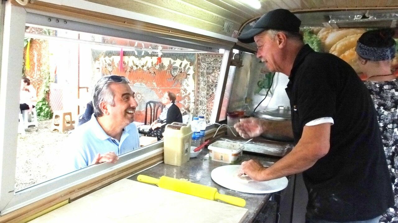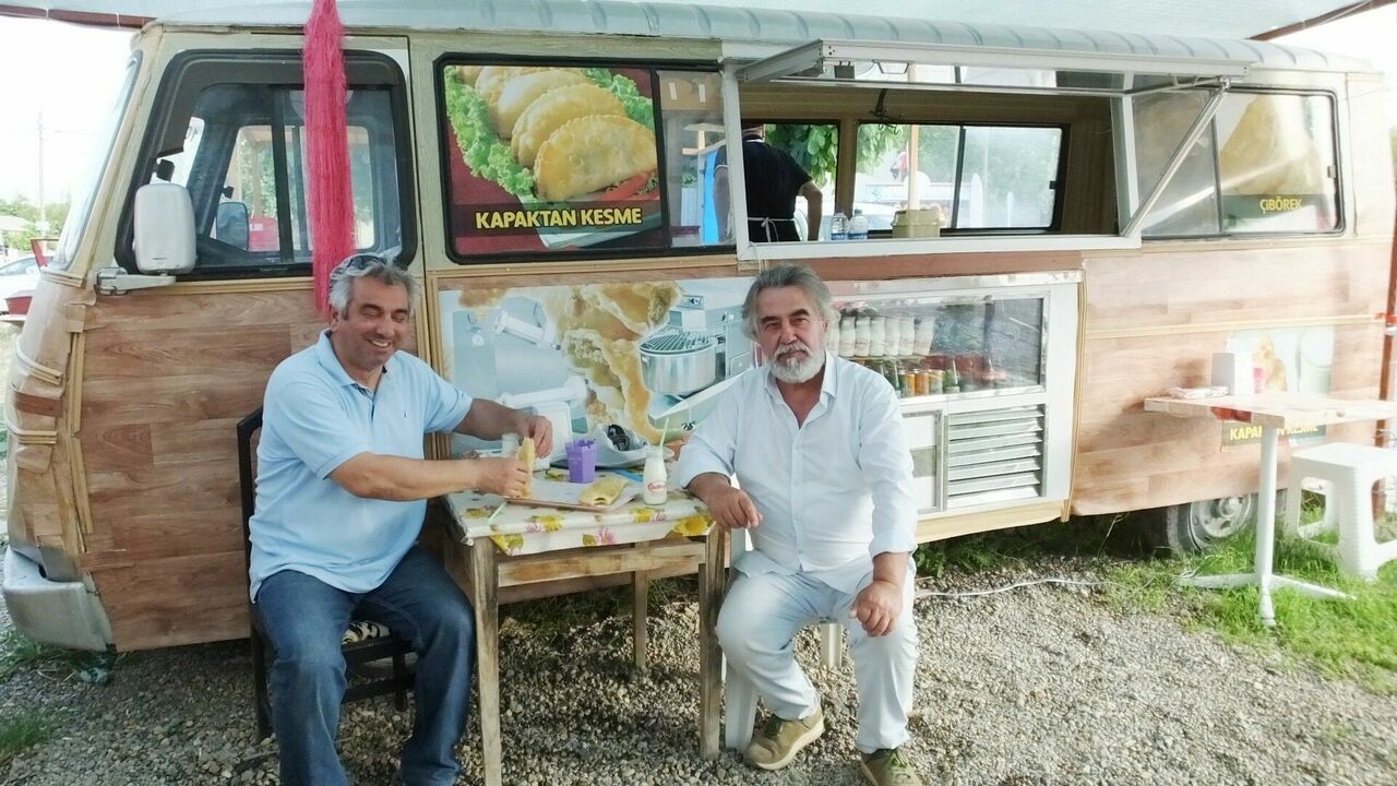 Burhaniye ilçesinde, çırçır fabrikası sahibi Ali Hamamcıoğlu, işleri bozulunca büfeye çevirdiği minibüs içerisinde çiğ börek yaparak geçimini sağlamaya başladı. Hamamcıoğlu'nun yıllar önce Tatarlardan öğrendiği tarife göre yaptığı çiğ börekler yok satıyor. Eski iş adamı "İçerisine sevgimizi katmamız yeterli oluyor" dedi.