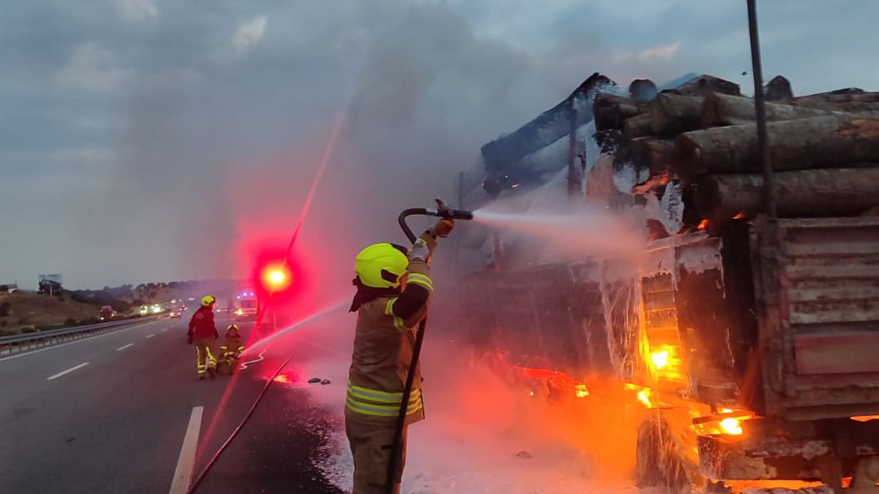 Yangın ilk olarak kamyon kasasında başladı ve kısa süre içinde taşıdığı tomruklara sıçradı.