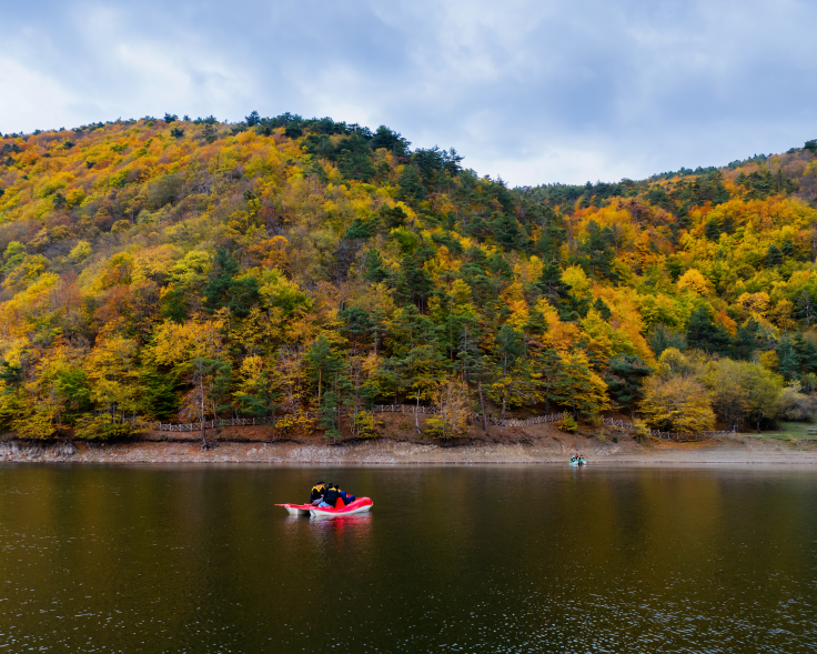 Amasya’nın Taşova ilçesinde bulunan Boraboy Gölü, bölgenin en önemli doğal güzelliklerinden biri olarak her mevsim farklı bir renge bürünüyor. Özellikle sonbaharda sarı, turuncu ve yeşilin tonlarının hâkim olduğu göl çevresi, ziyaretçilere adeta kartpostallık manzaralar sunuyor.