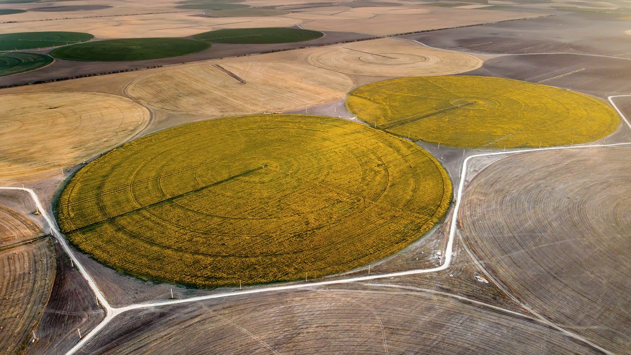 Her biri 365 dekarlık 78 dairesel tarla, ayçiçeklerinin açmasıyla birlikte sarı bir denize dönüştü. Görenleri büyüleyen bu görüntü, teknolojik tarım uygulamalarının geldiği noktayı da gözler önüne seriyor.