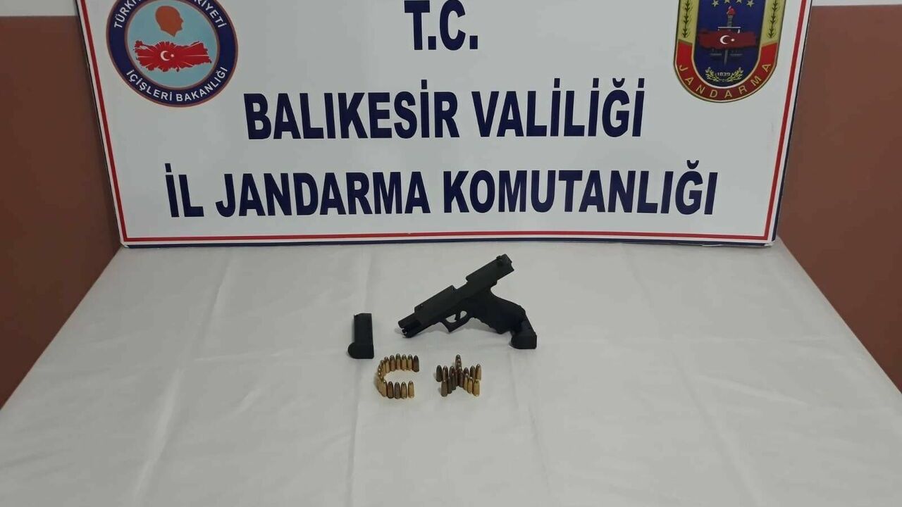 Erdek ilçesinde, jandarmanın bir gece kulübüne düzenlediği operasyonda Glock 17 marka ruhsatsız tabanca, 2 adet şarjör içerisinde toplam 28 adet 9 mm fişek, bant içerisine sarılmış halde 6 adet 9 mm fişek ele geçirildi, 2 kişi gözaltına alındı.