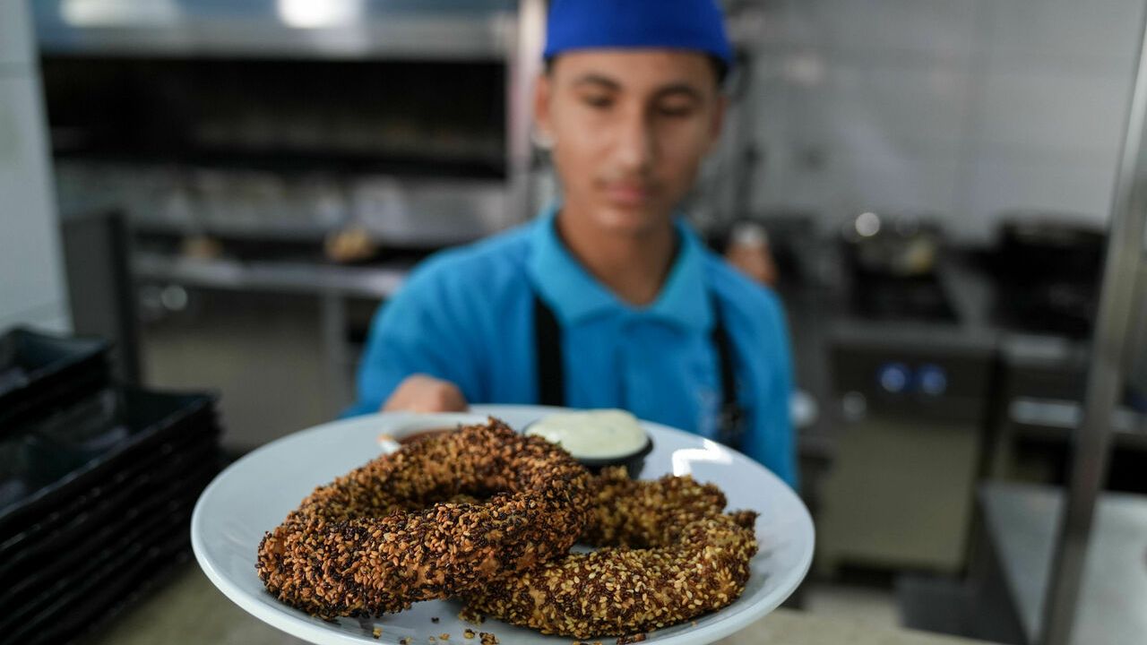İzmir'de bir balık restoranı, kentte "gevrek" olarak tabir edilen simitten esinlenip levrek balığını kullanarak oluşturduğu lezzetle müşterilerine farklı bir tat sunuyor.