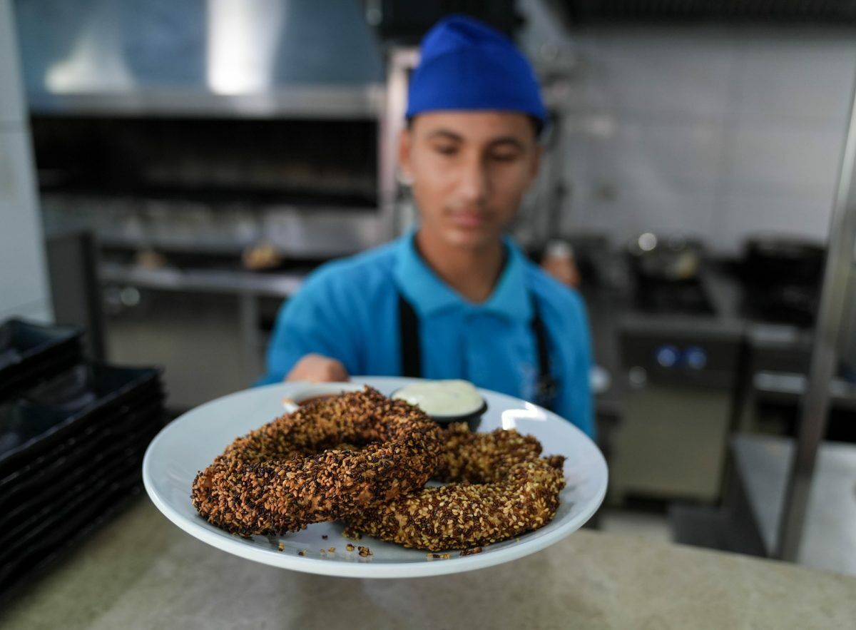 Menüye değişik lezzetler eklemeye çalıştıklarını ifade eden Kılıçdere, "Levrek gevrek, bu menüdeki farklı lezzetlere bir örnek. Kentin simgesi olan gevreği ve deniz ürünü levreği ortak noktada buluşturduk. Daha da ürünleri geliştirmeye çalışıyoruz." dedi.