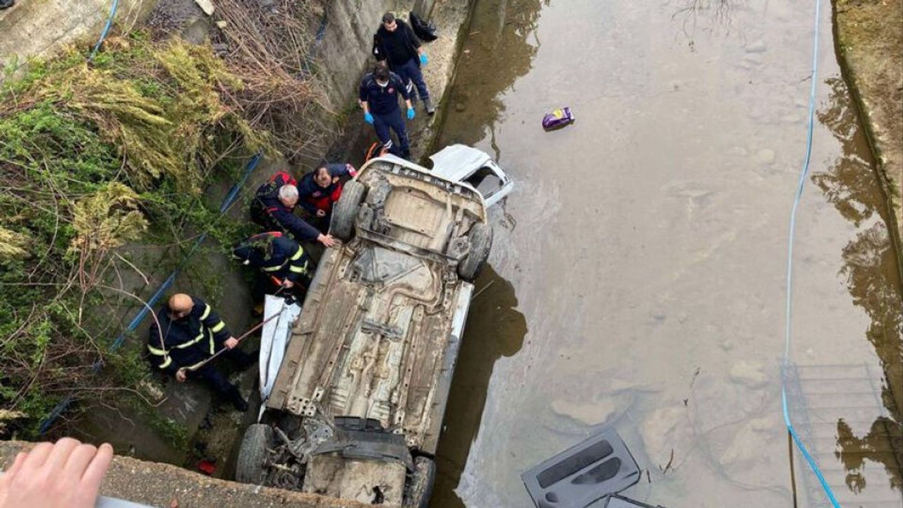 Giresun'un Tirebolu ilçesinde sürücüsünün direksiyon hakimiyetini kaybettiği hafif ticari aracın dereye devrilmesi sonucu adeta can pazarı yaşandı.