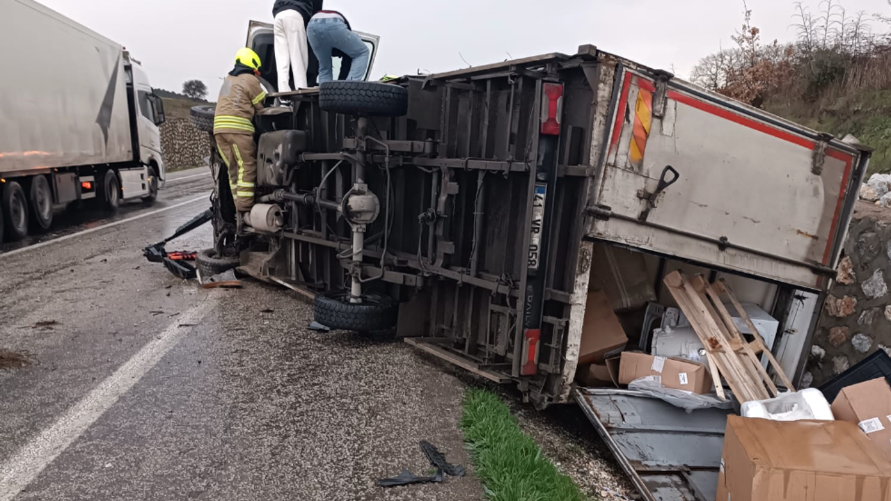 Edinilen bilgilere göre olay, bugün saat 17:30 sularında gerçekleşti. 41 VR 058 plakalı kamyonun sürücüsü C.Ü., bölgede etkili olan sağanak yağış sonrası kayganlaşan yolda aracın kontrolünü kaybetti. Kontrolden çıkan tır, yol kenarındaki boşluğa devrilerek durabildi.