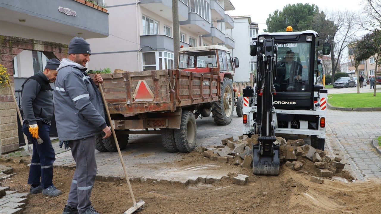 Çalışmaların en yoğun olduğu noktaların başında Kurtuluş Mahallesi geliyor. 5043 Sokak’ta yeni parke taş döşeme işleri sürerken, Yaprak ve Yıldız Sokaklarda ise deforme olan yolların taş tamiri titizlikle gerçekleştiriliyor.