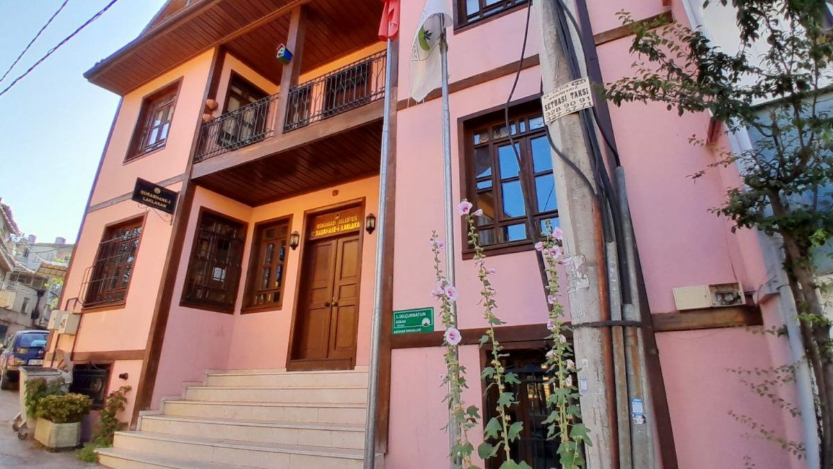 dönemin tarihi yapılarının bulunduğu sokakları dolaşırken güzel, eski bir Bursa evi çıktı karşıma. Evin üzerinde ise bir tabela;