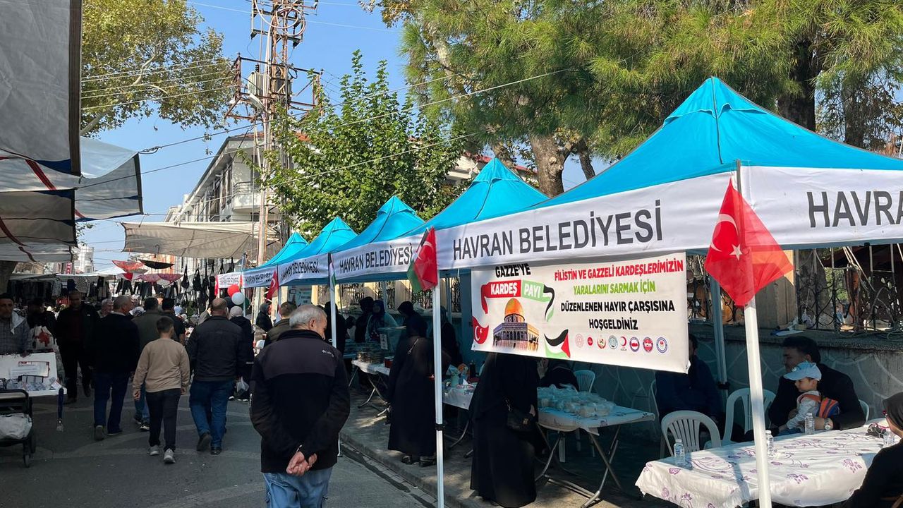 Havran Kaymakamlığı ve Havran Belediyesi himayesinde, sivil toplum kuruluşlarının katkılarıyla düzenlenen “Gazze’ye Kardeş Payı Hayır Çarşısı”, ilçe pazar yerinde yoğun katılımla gerçekleştirildi.