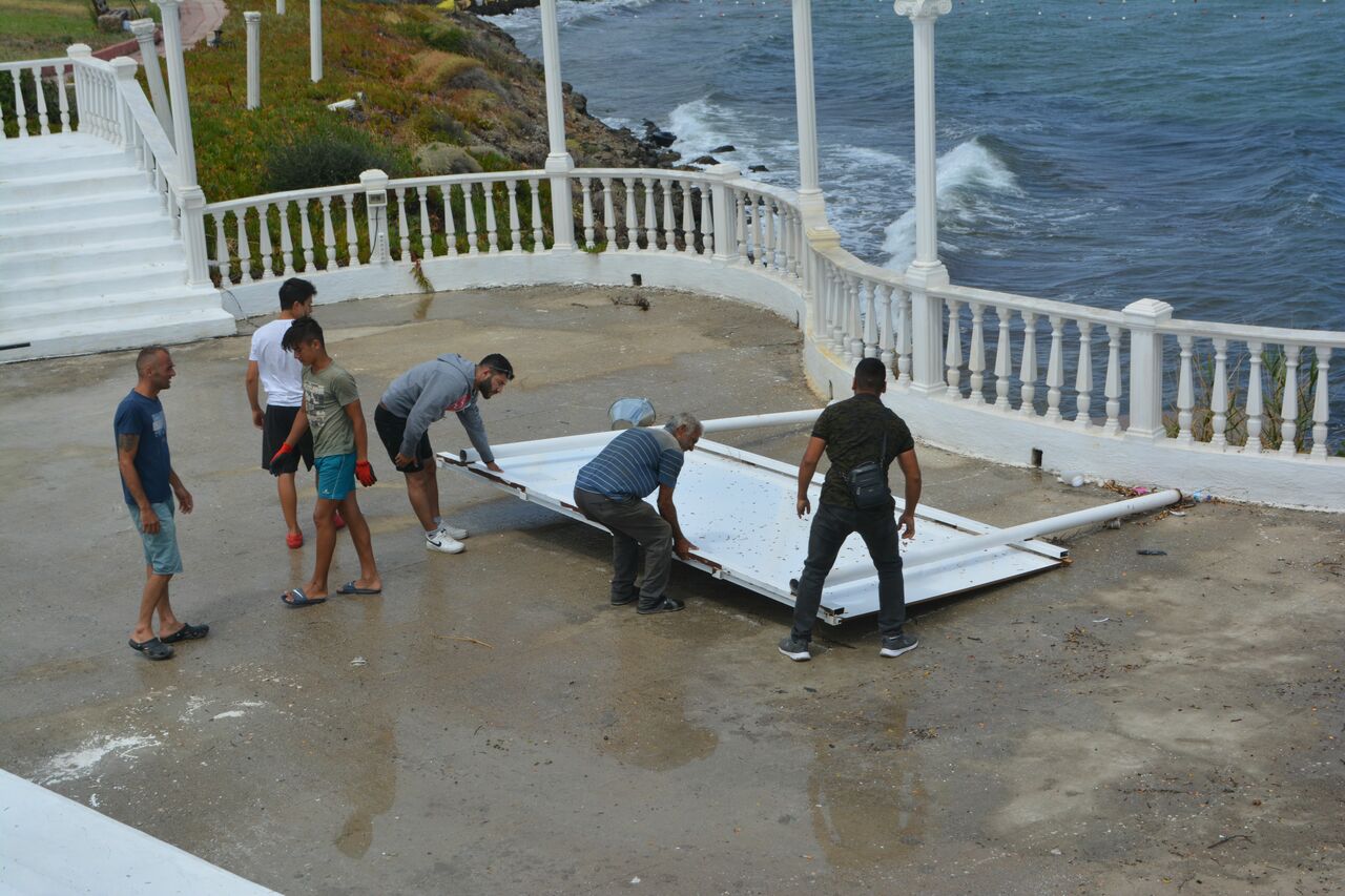 Site bünyesindeki Zeybek Restaurant ile bazı evlerde cam ve çerçeveler kırıldı. Site Başkanı Gürsel Uslu, hasar tespit çalışmalarının halen daha sürdüğünü kaydederek, “Gece sitenin sanki belirlenmiş bölgelerine bomba atılmış gibi bir manzara ile karşılaştık. Sosyal tesisimizde, iki plajımızda büyük hasarlar var. Site merkezindeki ticari binamızın çatısı bir arka sokağa uçtu. Enerji nakil hatları koptuğu için sitemizde halen daha elektrik enerjisi yok. Biz gece saat 03.00’den sonra Ayvalık’a indik. Ayvalık Belediyesi bize de bir ekip gönderdi. O saatten bu yana temizlik çalışmaları devam ediyor. Çok şükür ölen ya da yaralanan kimse yok” dedi.