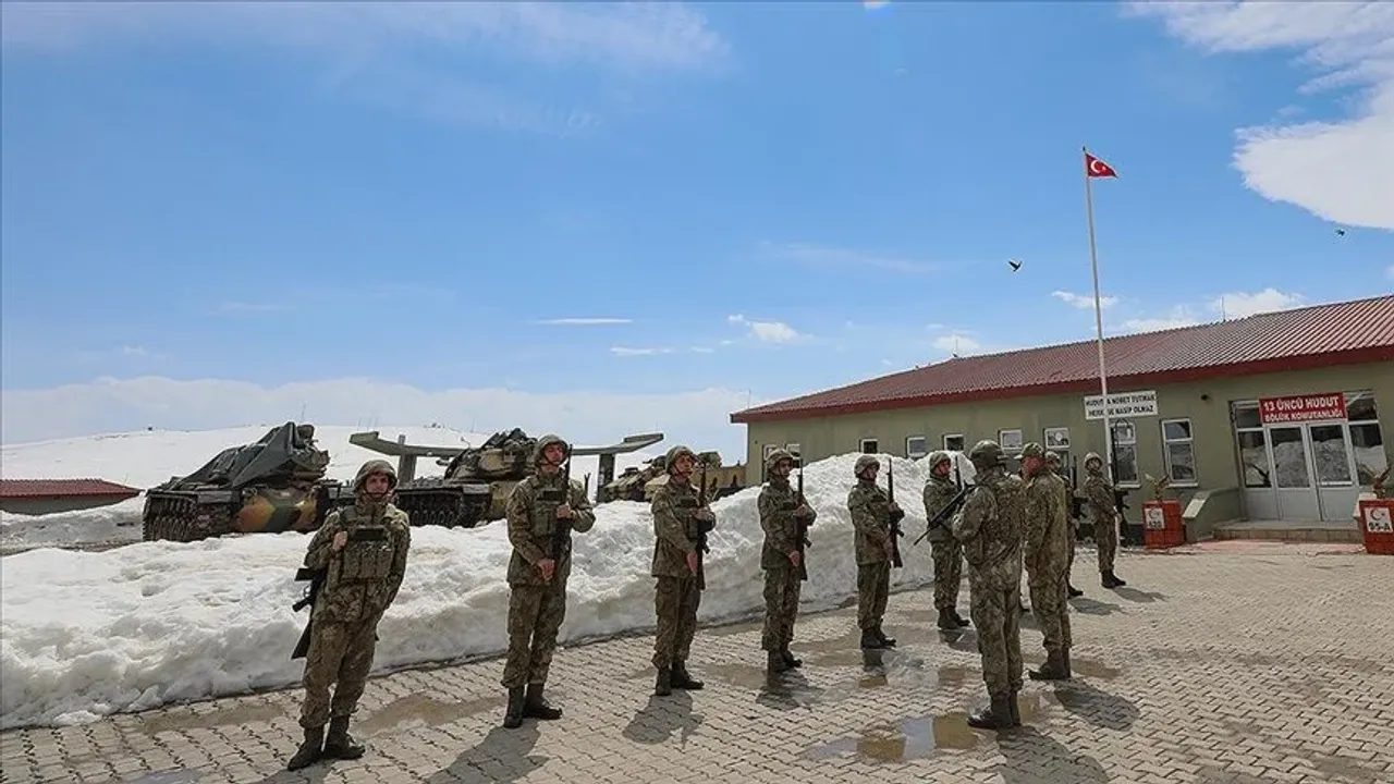 Ağrı'nın Doğubayazıt ilçesinde görev yapan Mehmetçik, Ramazan Bayramı'nda da görevinin başında. Bayram sabahında içtima alanında bir araya gelen askerler, ailelerinden uzakta komutanlarıyla bayramlaştı.
