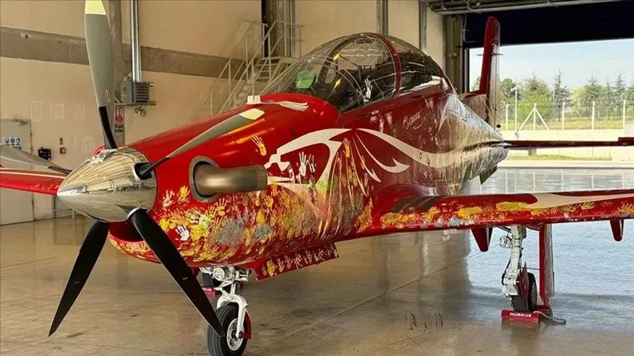 HÜRKUŞ pilotu Murat Özpala, yaptığı uçuşla, çocukların el izlerini ve hayallerini gökyüzüne taşıdı.
