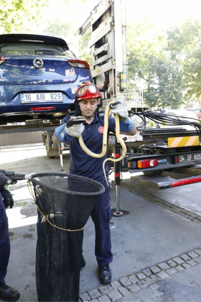Yangın, deprem, sel gibi ihbarlara müdahale ettikleri gibi hayvan kurtarma ihbarlarına da aynı hassasiyetle müdahale eden İstanbul İtfaiyesi, evcil hayvanların yanı sıra şehir içinde karşılaşılması nadir olan yılan ve iguana gibi hayvanların da imdadına yetişti.
