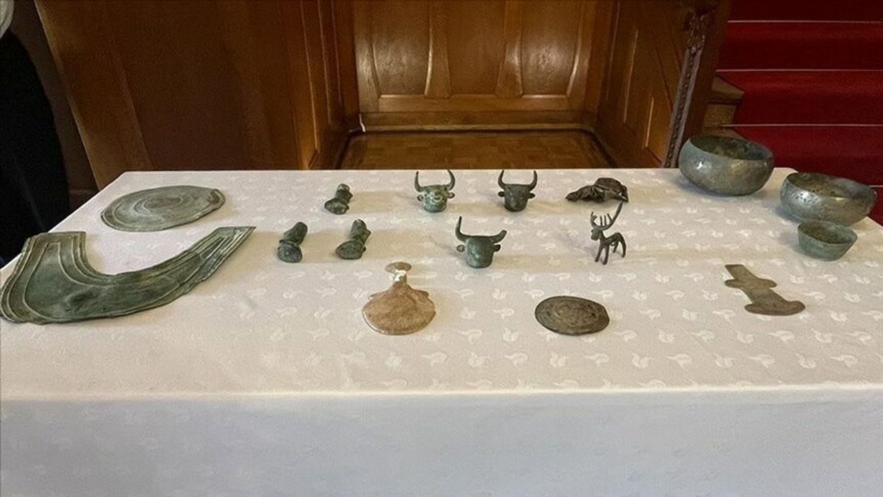İsviçre'den Türkiye'ye iade edilen 37 parçalık kültür varlığı, Urartu dönemine ait bronz kaplar, at koşum takımı parçaları, kusura tipi idol ile Roma Dönemi'ne ait geyik figürü ve gümüş vazoyu içeriyor.