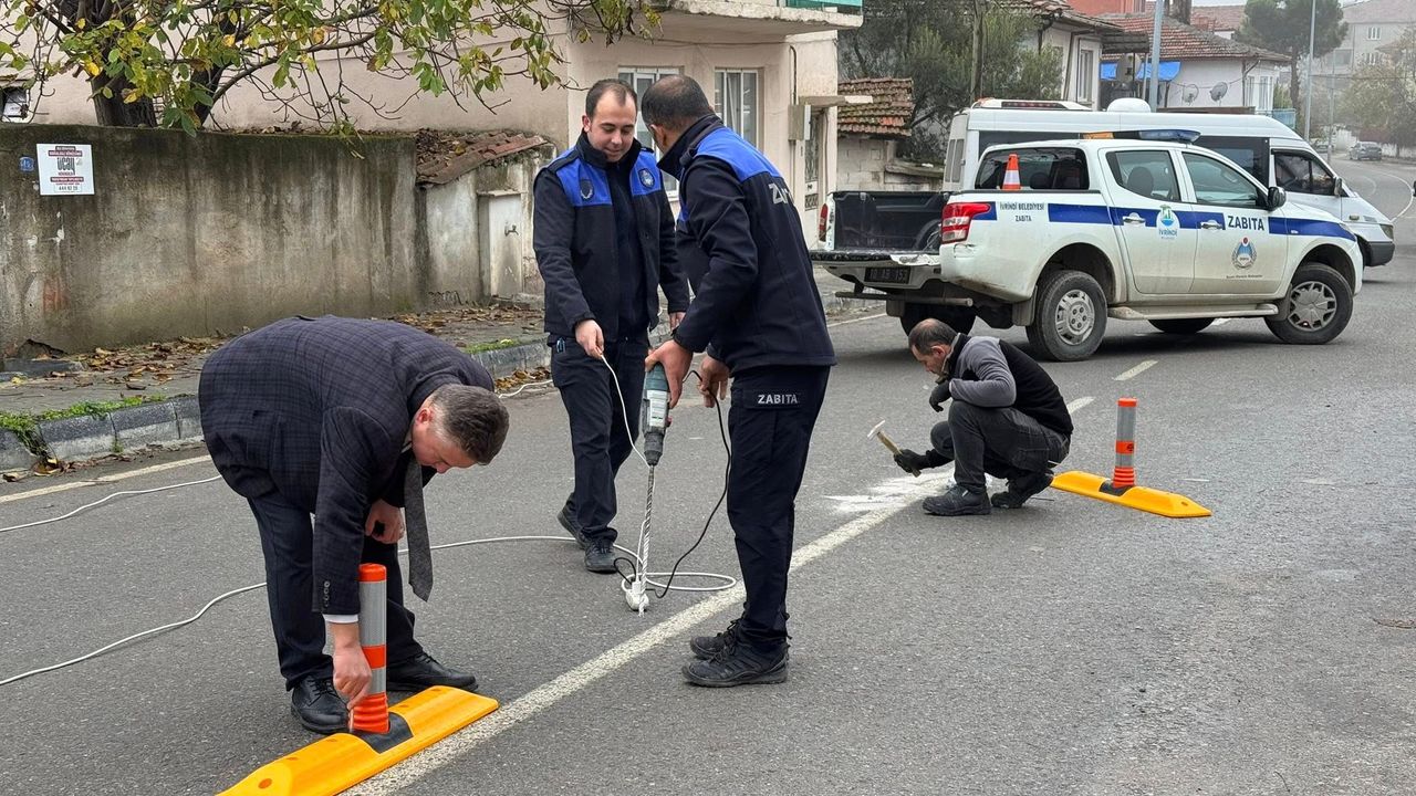 Zabıta ekipleri tarafından 7 Eylül Mahallesi eski lise önüne trafik ve kaza önleyici dubalar yerleştirildi.