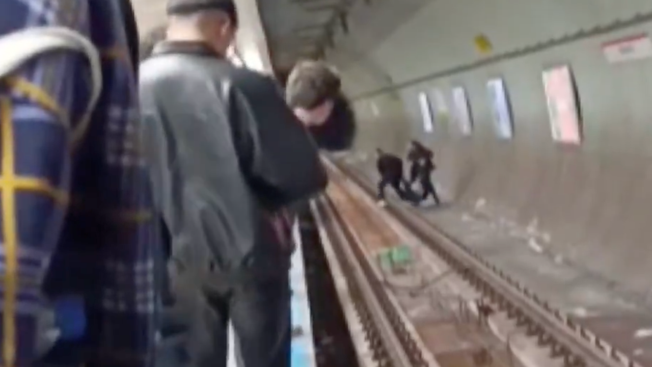 Raylara atlayarak yaşamına son vermek isteyen bir genç, istasyonda tren bekleyen diğer vatandaşların kahramanca müdahalesi sayesinde kurtarıldı.