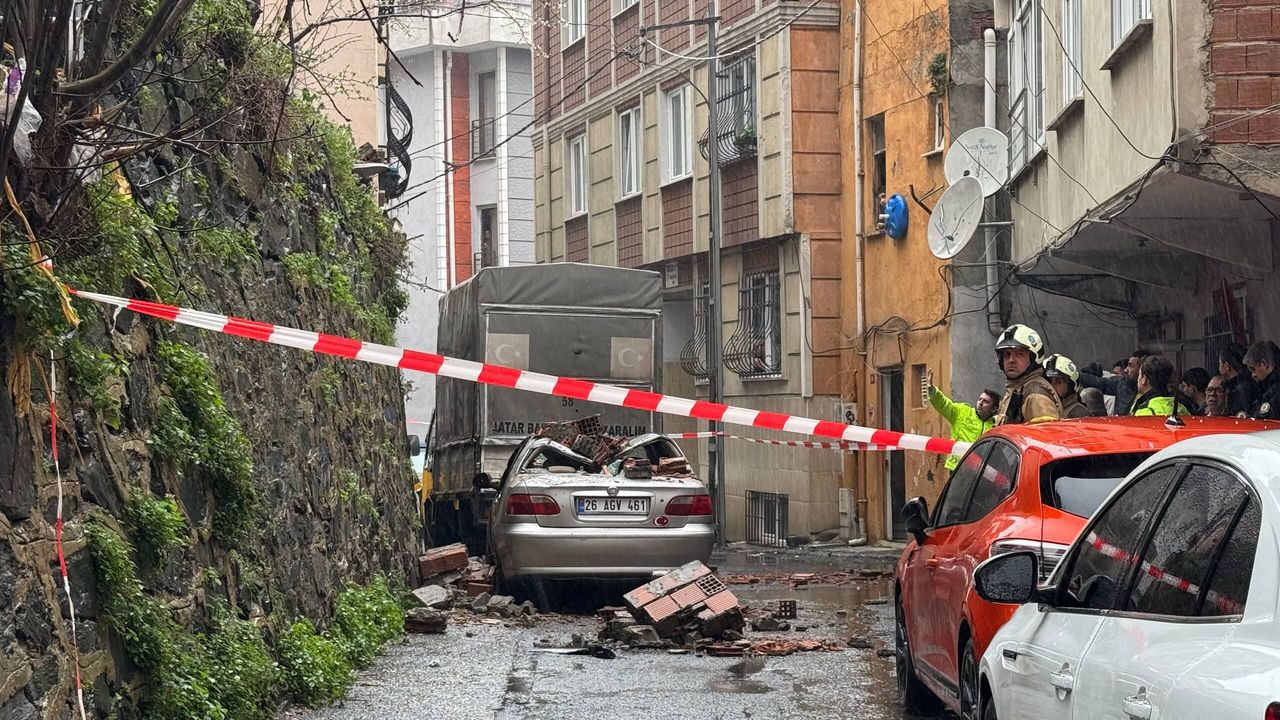 Duvardan kopan dev beton parçaları, yol kenarında park halinde bulunan bir aracın üzerine düşerek ağır maddi hasara yol açtı. Şans eseri olay sırasında araçta veya kaldırımda kimsenin bulunmaması olası bir faciayı önledi.