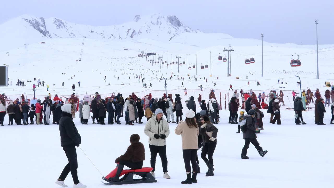 Hafta sonu tatilini kayak merkezinde geçirmek isteyen ziyaretçiler, İç Anadolu'nun "zirvesi" olarak nitelendirilen Erciyes Dağı'nda yoğunluk oluşturdu.