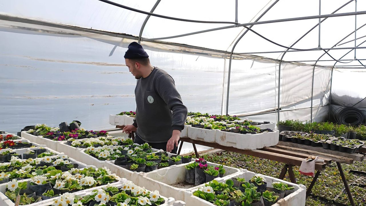 Peyzaj serası için çelik alımı yapılırken çiçek bakımı çalışmaları da sürdürüldü.