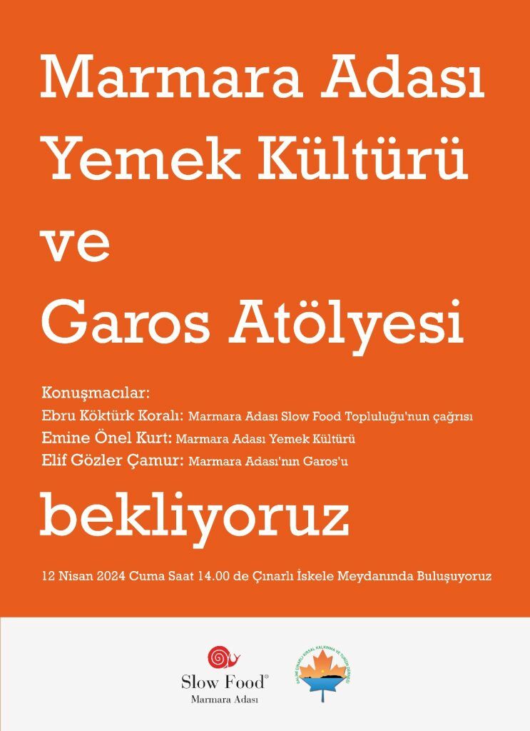 12 Nisan'da Marmara Adası Çınarlı Mahallesi'nde düzenlenen Marmara Adası Yemek Kültürü ve Garos Atölyesi etkinliğinde, Elif Gözler Çamur Marmara Adası'nın Garos'u üzerine yapılan araştırmanın ilk verilerini paylaşmıştı. Bu etkinlikte, Marmara Adası Slow Food Topluluğu liderlerinden Ebru Koralı ve Emine Önel Kurt tarafından yapılan konuşmalar da etkinliğe renk katmıştı.