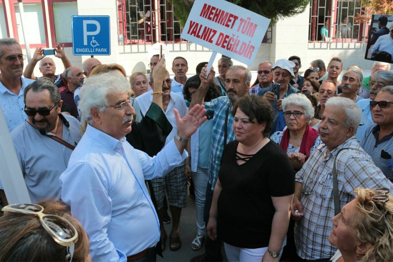 Cumhuriyet Savcısı’nın hazırladığı iddianamenin bir yerinde “Deniz Gezmiş’i övdüğü” ifadelerinin yer almasıyla, “bir halk kahramanını övdüğüm için yargılanıyorum” tozu attıran Mehmet Tüm, Adliye çıkışında kendisini destek için gelen kalabalığa da seslenmeyi ihmal etmedi. Hazırladığı siyasi şovla Balıkesir Adliyesi’nin işleyişini de bir süre kilitleyen Tüm, Bahçeli ve Soylu için söylediklerinde ‘hakaret kastı’ olmadığını da ileri sürdü.