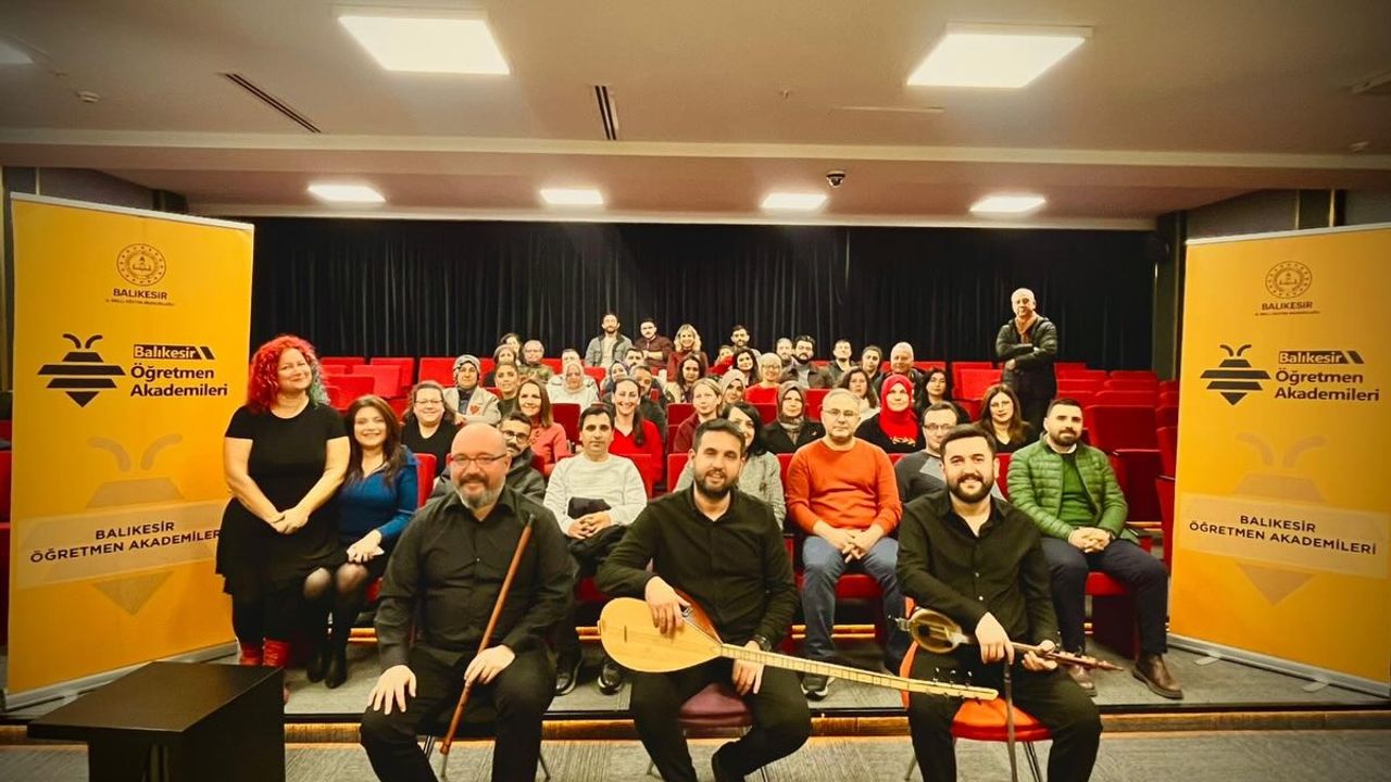 Programın ilerleyen bölümünde konuk sanatçılar Balıkesir yöresine ait türküler seslendirdi. Öğretmenlerin de türkülere eşlik ettiği bu bölümde, eserlerin ortaya çıkış hikâyeleri, yöresel bağlamları ve anlam dünyaları üzerine açıklamalarda bulunuldu. Böylece müzik, şehir ve hafıza arasındaki bağ katılımcılar tarafından doğrudan deneyimlendi.