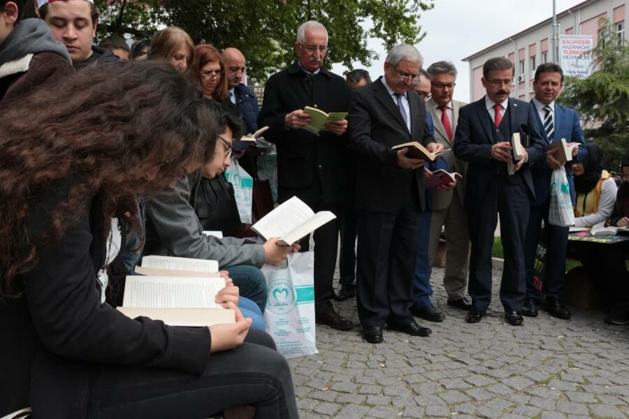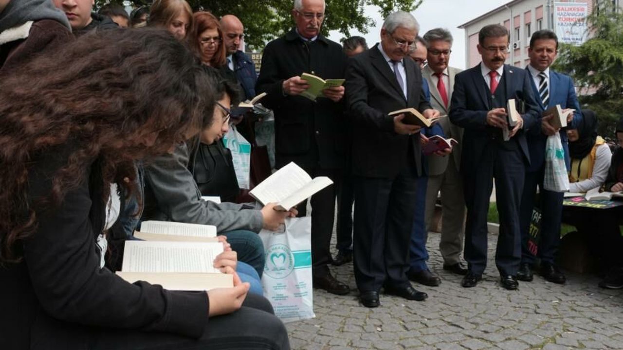 Balıkesir’de 55’inci Kütüphane Haftası dolayısıyla Milli İrade Meydanı’nda kitap okuma etkinliği düzenlendi. İl Kültür ve Turizm Müdürlüğü’ne bağlı İl Halk Kütüphanesi tarafından düzenlenen etkinlikte protokol üyeleri öğrencilerle birlikte kitap okudu.