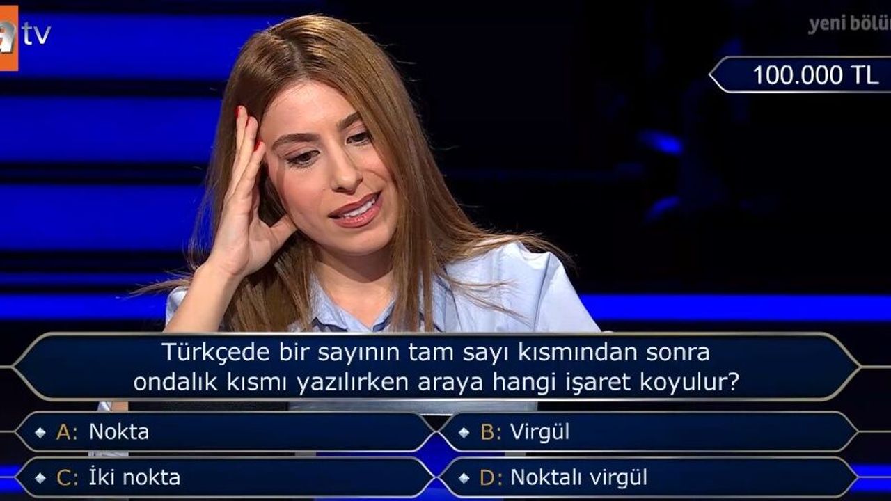 Milyoner'de 100 Bin TL'lik Yazım Kuralı Sorusu: Nokta mı, Virgül mü?