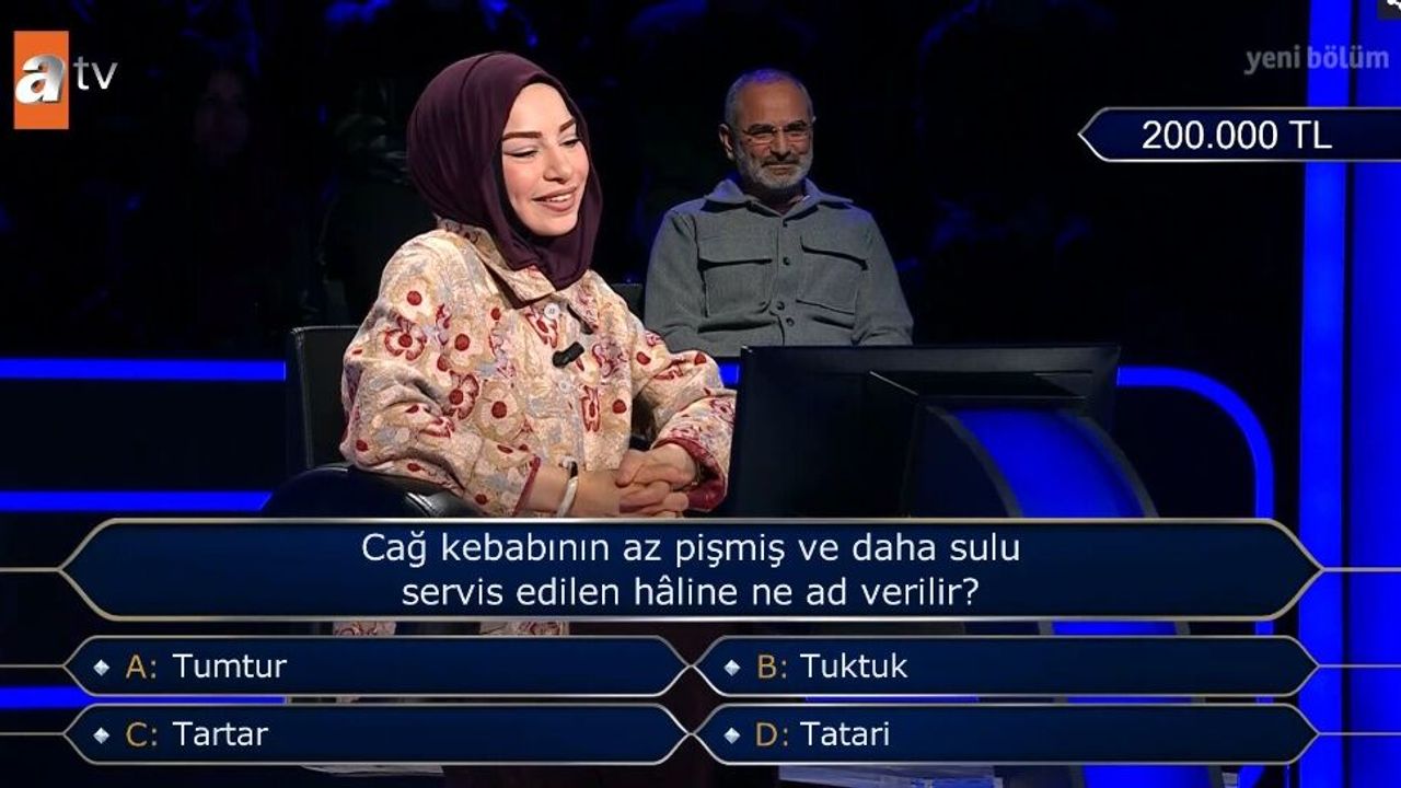 Yarışmacının karşısına 200.000 TL değerinde çıkan soruda, cağ kebabının özel bir servis biçimi sorgulandı. Gastronomi meraklılarını ekran başına kilitleyen o soru ve seçenekler şu şekildeydi: