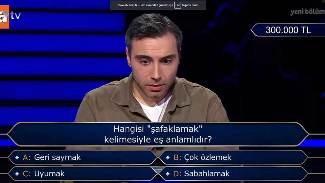 ATV’de 9 Nisan 2026 akşamı yayınlanan bölümde, yarışmacının karşısına çıkan anlam sorusu sosyal medyada en çok aratılan konular arasına girdi. Şafak vaktiyle bağdaştırılan şıklar arasından doğruyu bulmak sanıldığı kadar kolay olmadı.