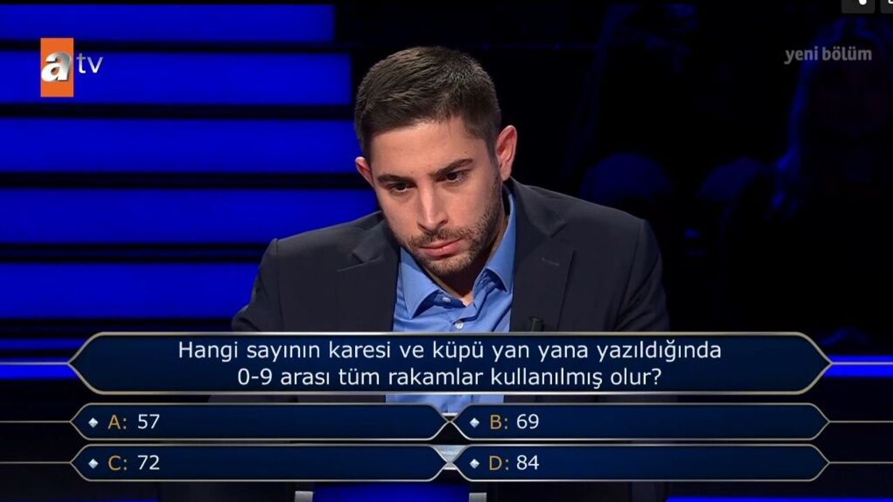 Kenan İmirzalıoğlu’nun sunduğu yarışmanın son bölümünde, temel matematik prensiplerini hıza dayalı bir mantıkla birleştiren ilginç bir soru soruldu: "Hangi sayının karesi ve küpü yan yana yazıldığında 0-9 arası tüm rakamlar kullanılmış olur?"