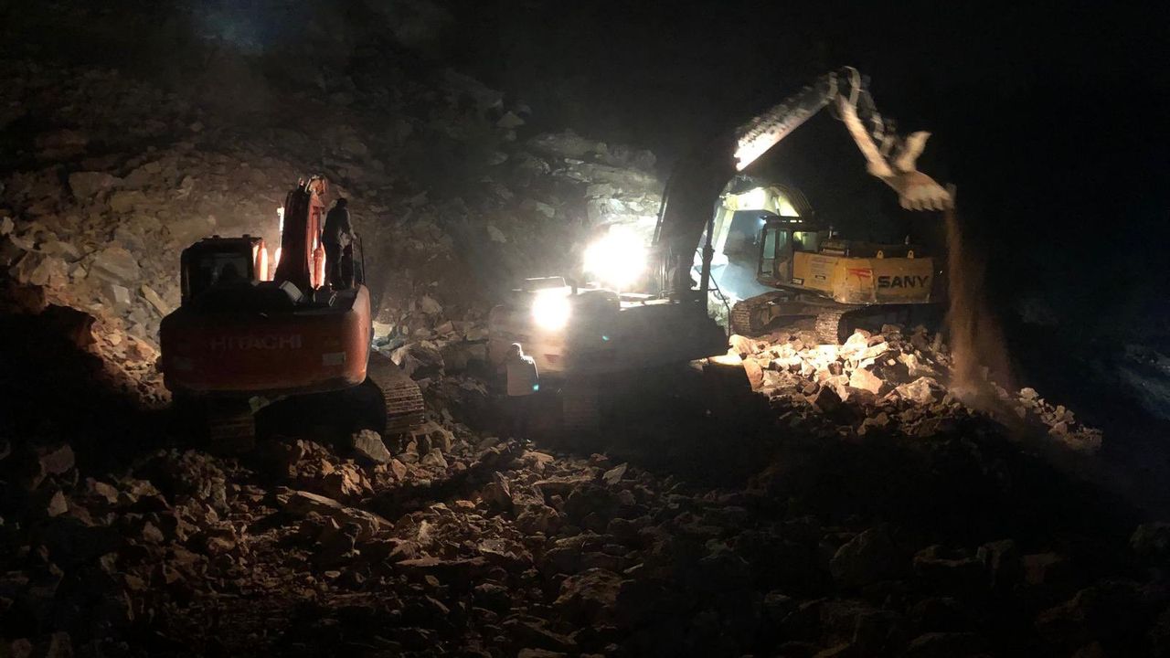 Ekipler, bölgede hassas bir kazı çalışması yürüterek toprak altında kalan işçilere ulaşmaya çalışıyor.