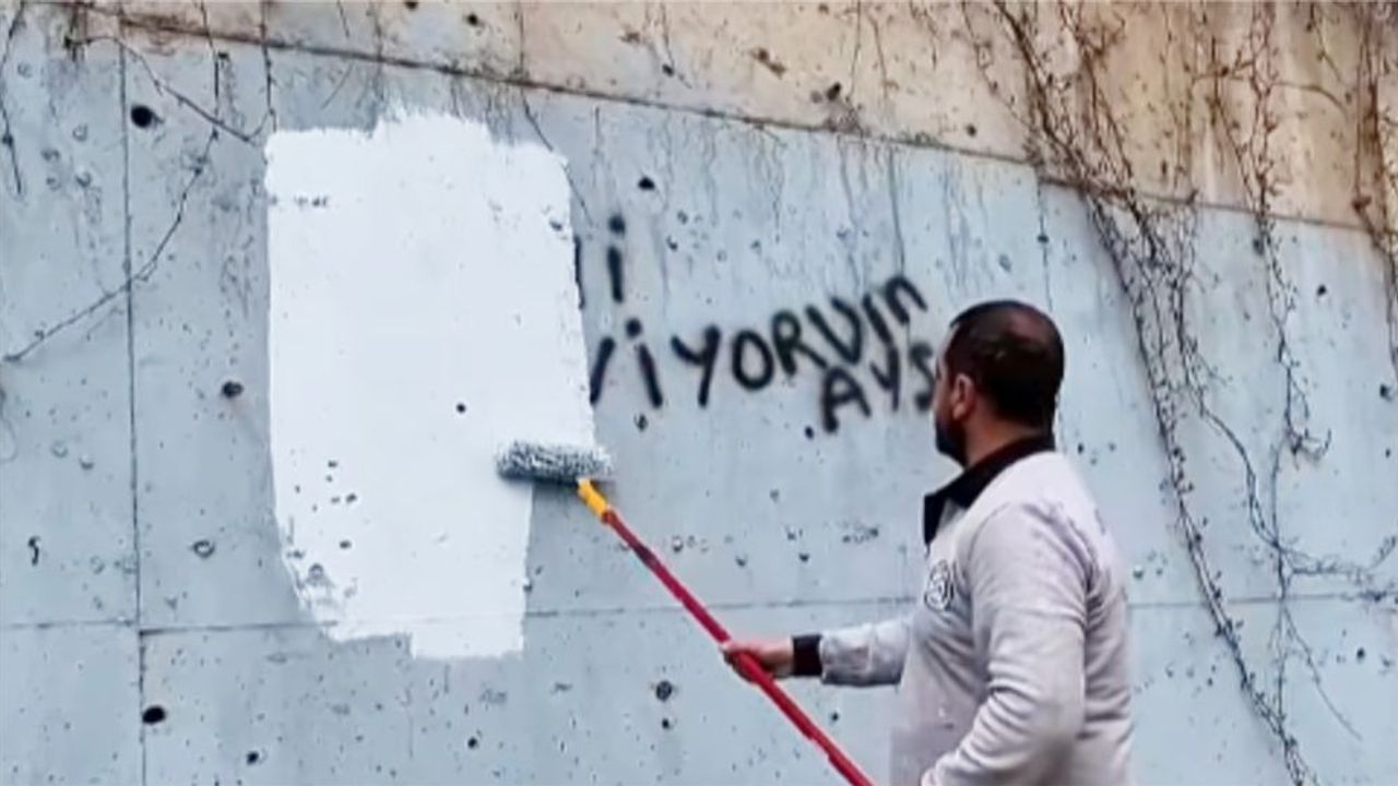Belediye işçisi beyaz boyayı sürüyor, yazı yavaş yavaş kayboluyor. Videonun altına düşülen not ise işin tonunu belirliyor: "Seviyorsan git konuş, çünkü biz siliyoruz!" Ardından bir başka cümle: "İlçemizin estetiği ve çevre düzeni için sahadayız..."