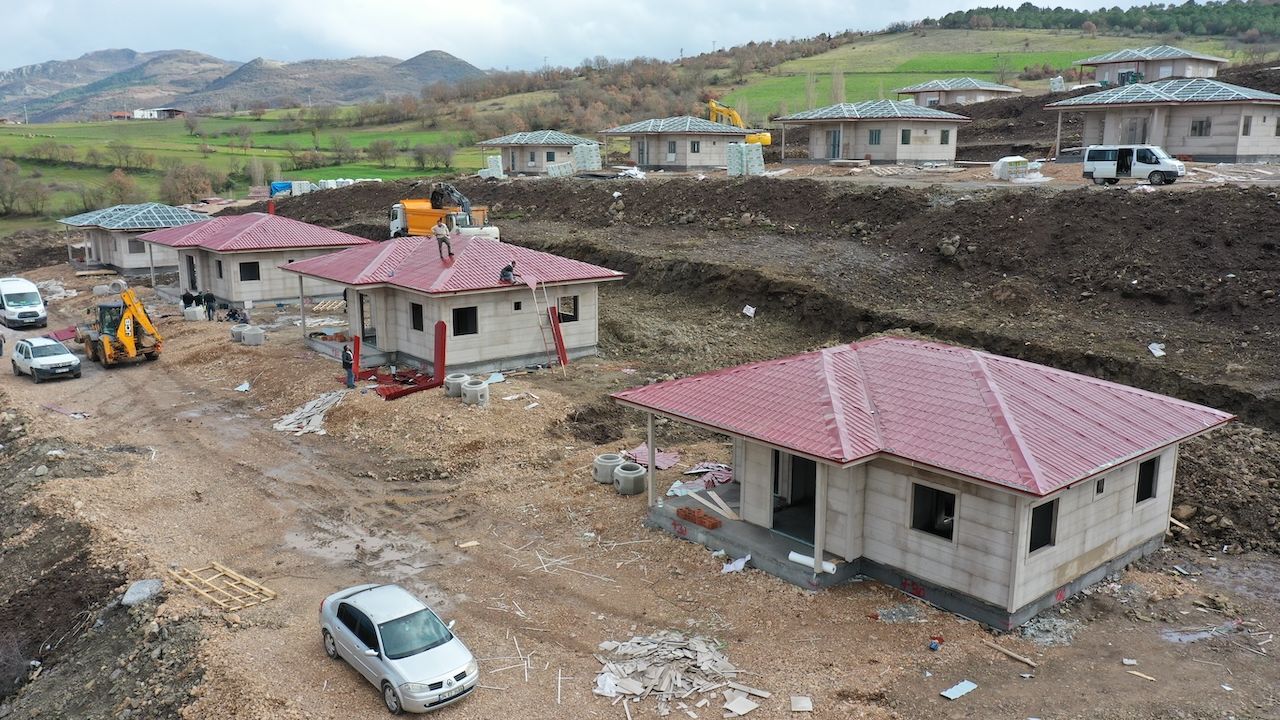Devletin tüm imkanlarını seferber ettiği bölgede, kırsal mahalleler için projelendirilen deprem konutlarının kaba inşaatları yükselerek tamamlanma aşamasına geldi.