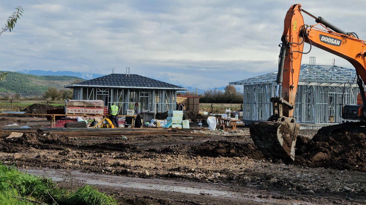 Balıkesir'in Sındırgı ilçesinde 10 Ağustos ve 27 Ekim’de meydana gelen 6,1 büyüklüğündeki depremlerin ardından kırsal mahallelerde başlatılan konut çalışmaları aralıksız sürüyor. Depremden en çok etkilenen noktalardan biri olan Alacaatlı Mahallesi’nde evleri ağır hasar alan vatandaşlar için 40 adet köy tipi konutun inşasına devam ediliyor.