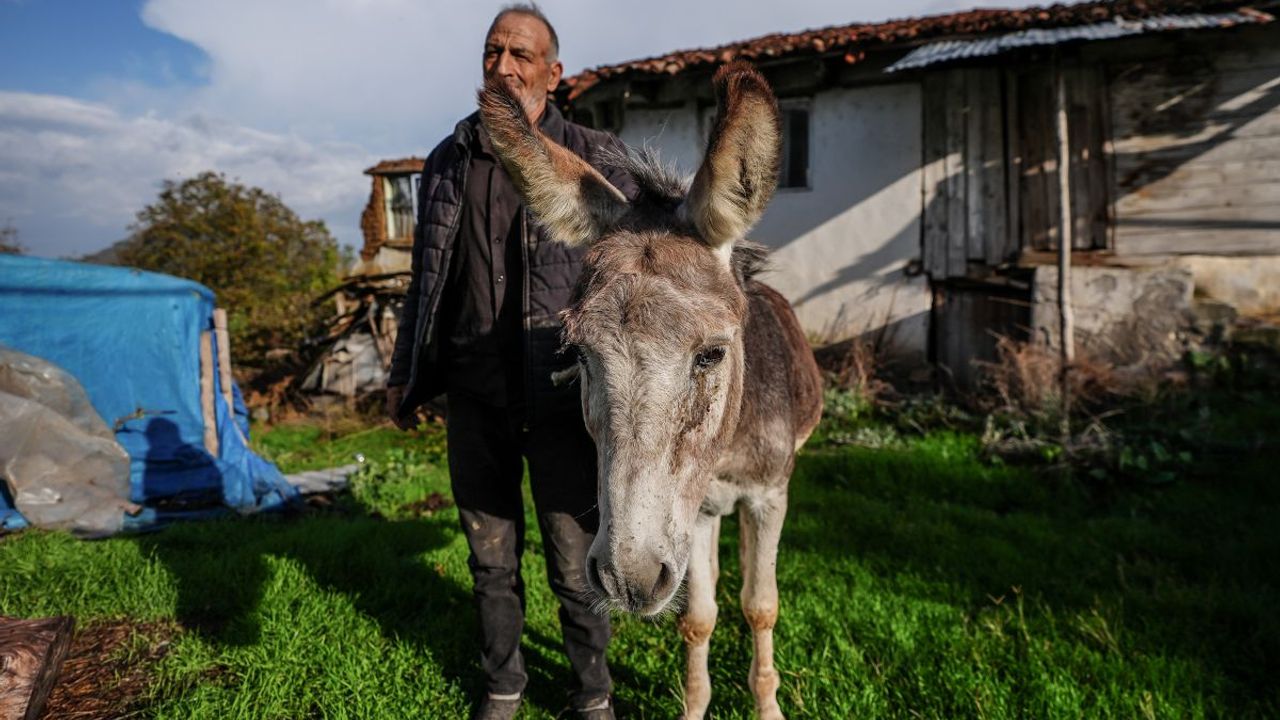 Deprem sonrası evinin sağlam olduğundan emin olan Erbaş, hayvanlarını kontrol etmek için ahıra gittiğinde, “Kadife” isimli eşeğinin molozların altında kaldığını fark etti.