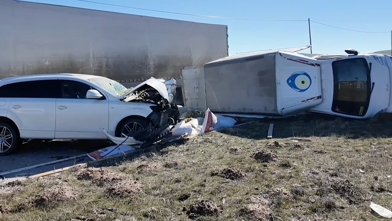 Sivas Gemerek’te Zincirleme Dehşet! Ihlamur Yüklü Kamyonet Devrildi, Otomobil Çarptı: 2 Yaralı