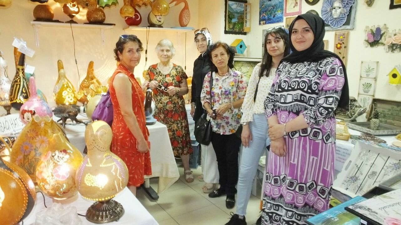 Burhaniye’de Eda Şahin’in eğitmenliğini yaptığı kurslarda su kabakları birbirinden güzel aksesuarlara dönüştü. Hat sanatından leylek ve ingunaya kadar değişik şekillerde işlenen su kabakları ilgi gördü. Halk Eğitimi Merkezi’n de sergilenen bir birinden güzel kabak işlemeleri satmak istediklerini anlatan Kurs Öğretmeni Eda Şahin, kurslardaki su kabağı sıkıntısını da giderdiklerini söyledi. Ürünleri çok beğendiğini anlatan Hasan Abdullah Çakır, “Su kabakları çok güzel işlenmiş. Hepsinin ellerine sağlık. Ben de bu kursa gelmek istiyorum” dedi. Uzun zamandır kurslara geldiğini anlatan Mükerrem Aygül de, ”Ben bu güne kadar değişik kurslara katıldım. Şimdi ise kabakları işliyoruz. Çok güzel işler ortaya çıktı. Ancak, bunları satmak istiyoruz. Bu konuda da destek bekliyoruz” dedi. İki yıldan bu yana kabak kursu verdiğini anlatan Eda Şahin ise, ”Halk Eğitimi Merkezi’nde su kabağı kursu veriyoruz. Geçtiğimiz yıllarda kabak bulmakta zorlanıyorduk. Bu yıl bir arkadaşımız üretti. Onun için şuanda bu sıkıntı bitki Hat sanatından leylek ve inguanaya kadar değişik şekiller yaptık. Ürünlerimiz büyük ilgi gördü. Ancak, bunları satıp gelir elde etmek istiyoruz. Bunun için de destek bekliyoruz” dedi.