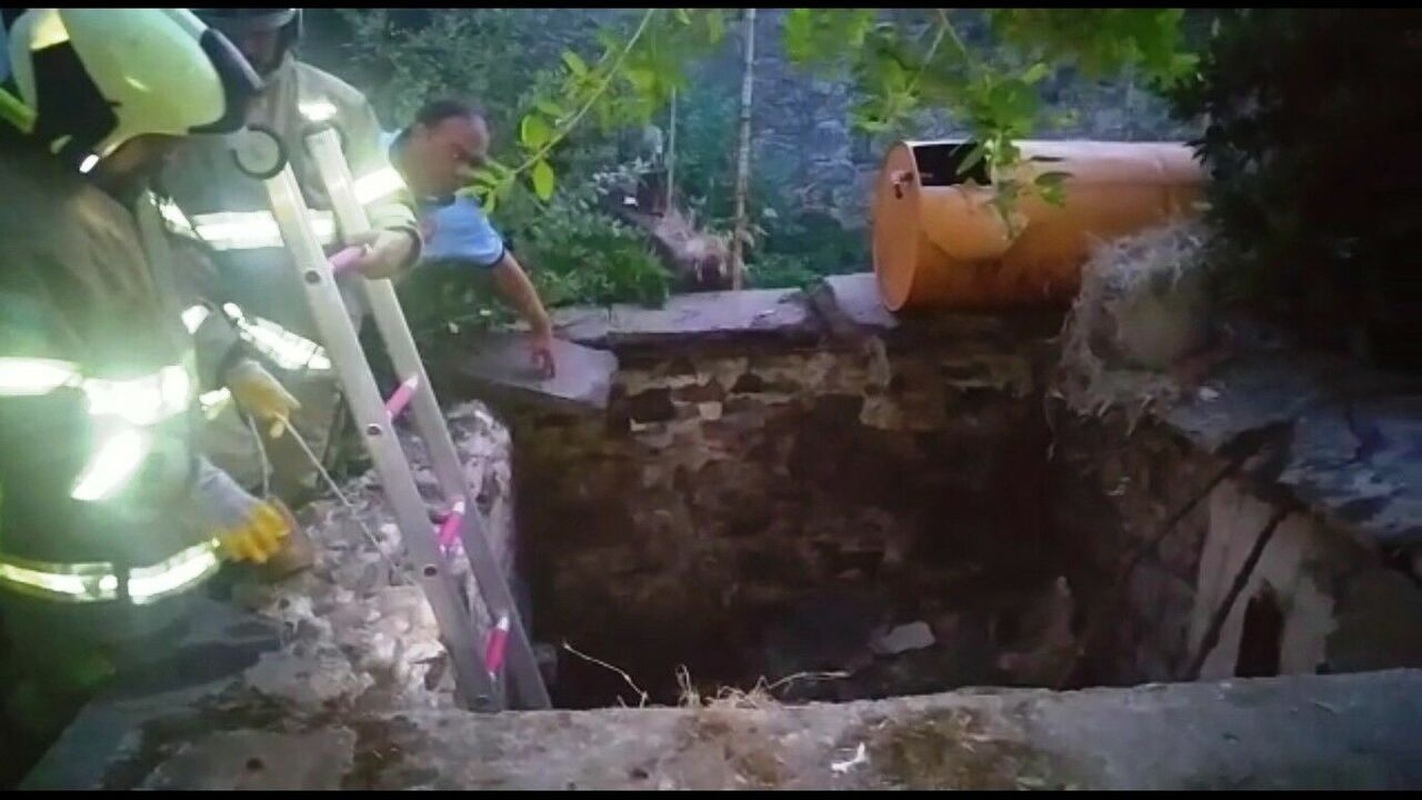 Yaklaşık 15 metre derinliğindeki kuyuya düşen baba-oğlun yardım çığlıklarını duyan mahalle sakinleri, hemen itfaiyeye durumu ihbar etti.